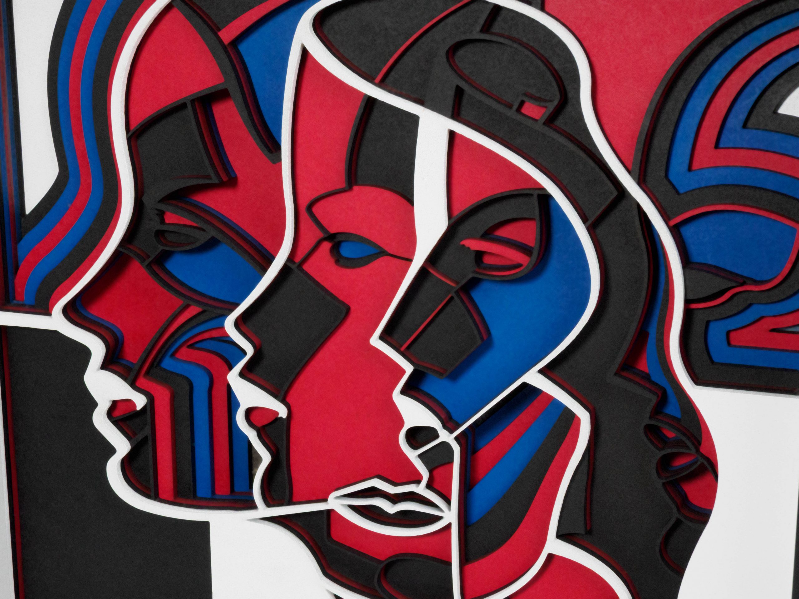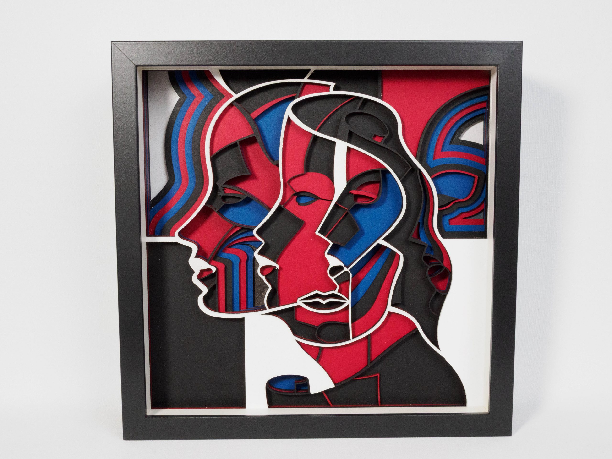 Das Multilayer Cut Design „Gesicht“ besteht aus 9 einzeln gelaserten Schichten, die übereinander angeordnet ein stilisiertes Porträt mit faszinierender Tiefenwirkung bilden.
