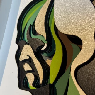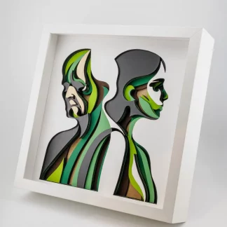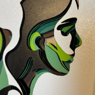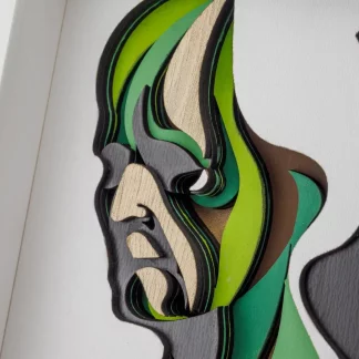 „The Old & Young“ ist ein ausdrucksstarkes Multilayer Wandbild aus Holz, das die Gegensätze und die Harmonie zwischen Jugend und Alter symbolisiert. Gefertigt aus sieben präzise gelaserten Holz-Layern, entsteht durch Tiefe, Struktur und Kontrast ein beeindruckendes 3D-Kunstwerk.